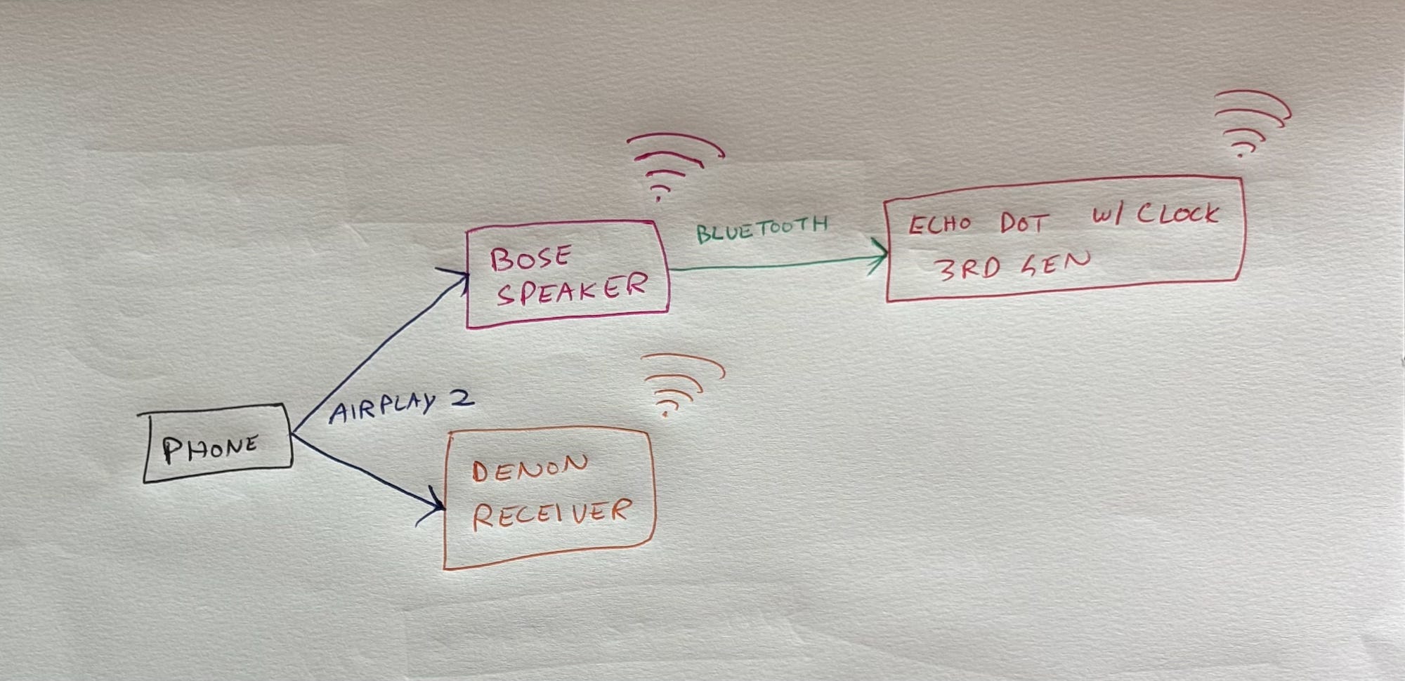This is the only way I can get all my three of my speakers (Bose, Denon and Echo) to play at once, since the Echo doesn’t support AirPlay 2.